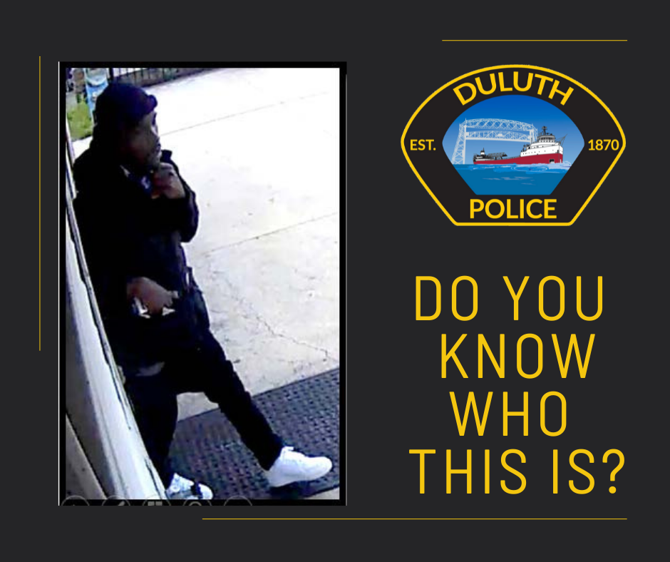 The Duluth Police Department is asking for the public’s help in identifying the suspect from the robbery at Sadi’s Smoke Shop that took place yesterday morning. Video surveillance of the suspect was recovered by Investigators with the Duluth Police Departments Violent Crimes Unit. If you know who the person is in the picture below or have information about this incident, please call the Violent Crimes Unit (218-730-5050).